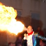 Un numéro en magicien du Moyen-Age, costume médiéval, avec des tours d’illusionnisme faits dans les rues ou autres lieux, et aussi un numéro de cracheur de feu.